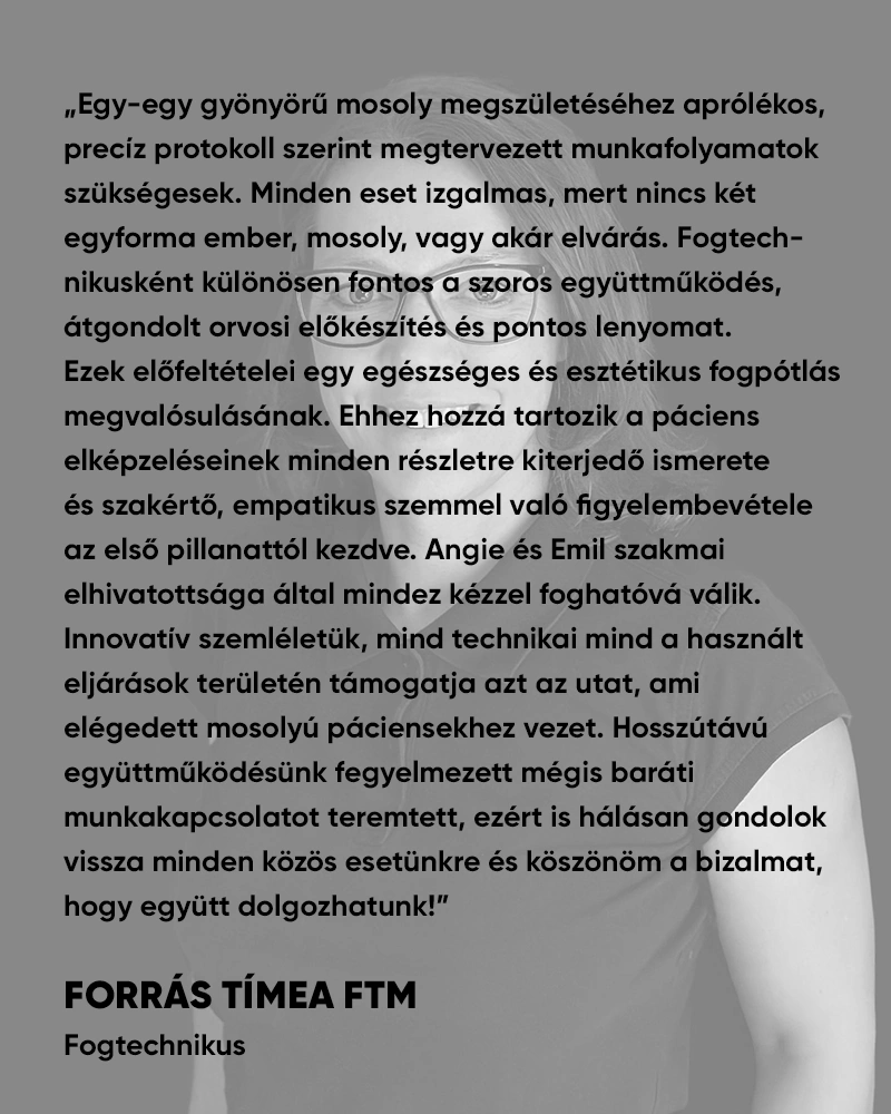 Nem csupán helyreállítunk; újradefiniálunk. Az eredmény? Egy kiegyensúlyozott, természetes és tartós átalakulás – amely túlmutat a fogorvosláson, és a páciens teljes életminőségét emeli új szintre.