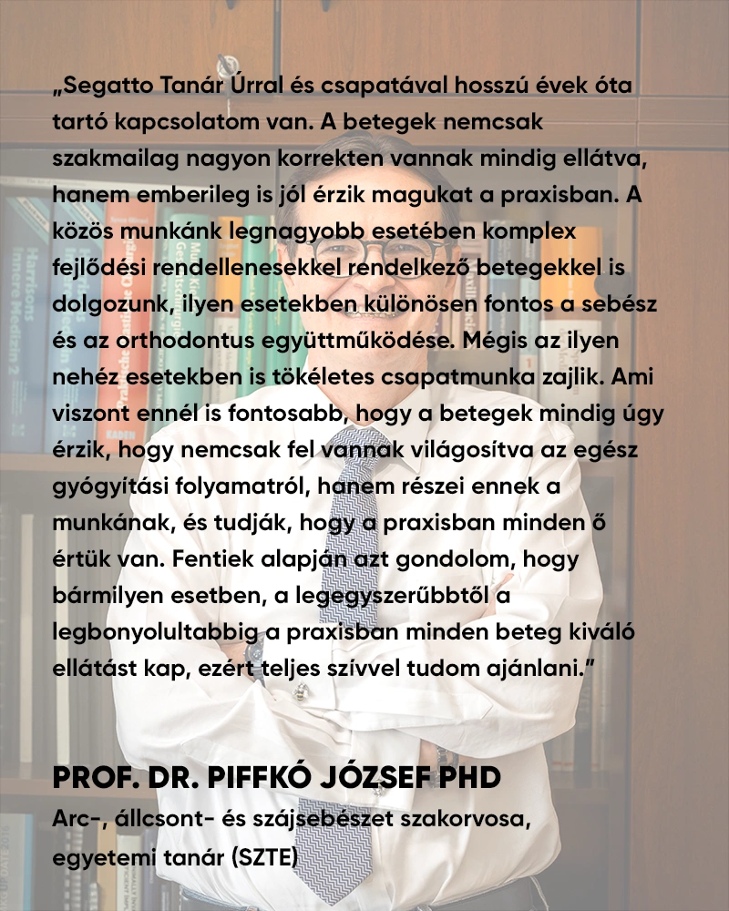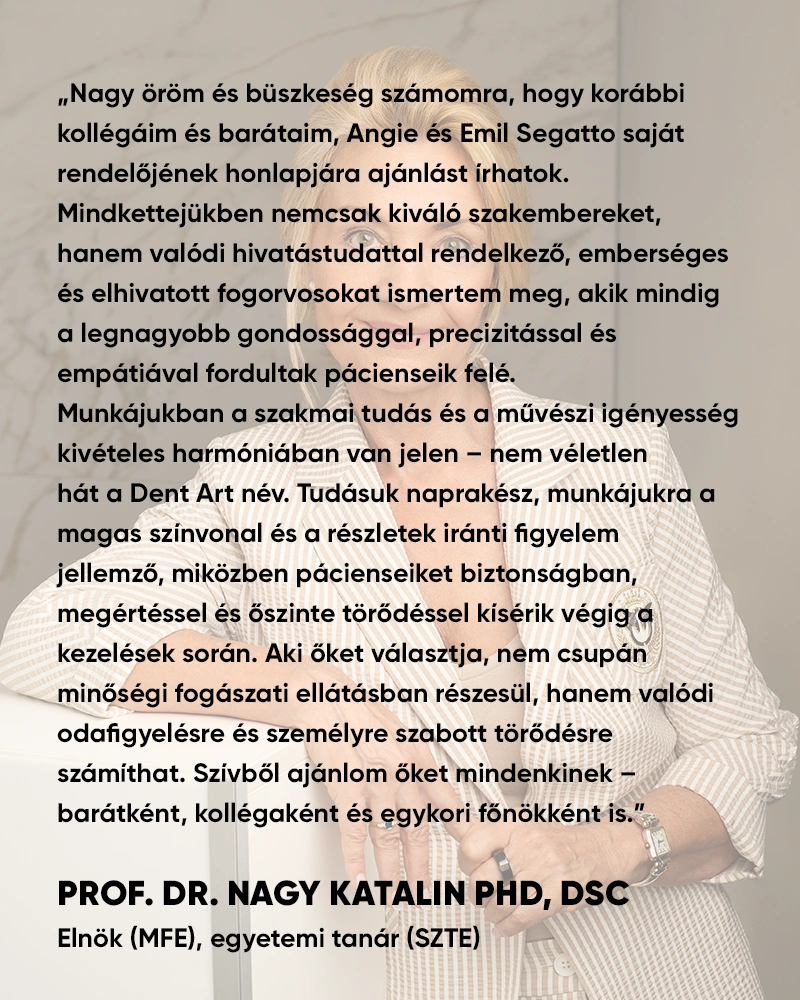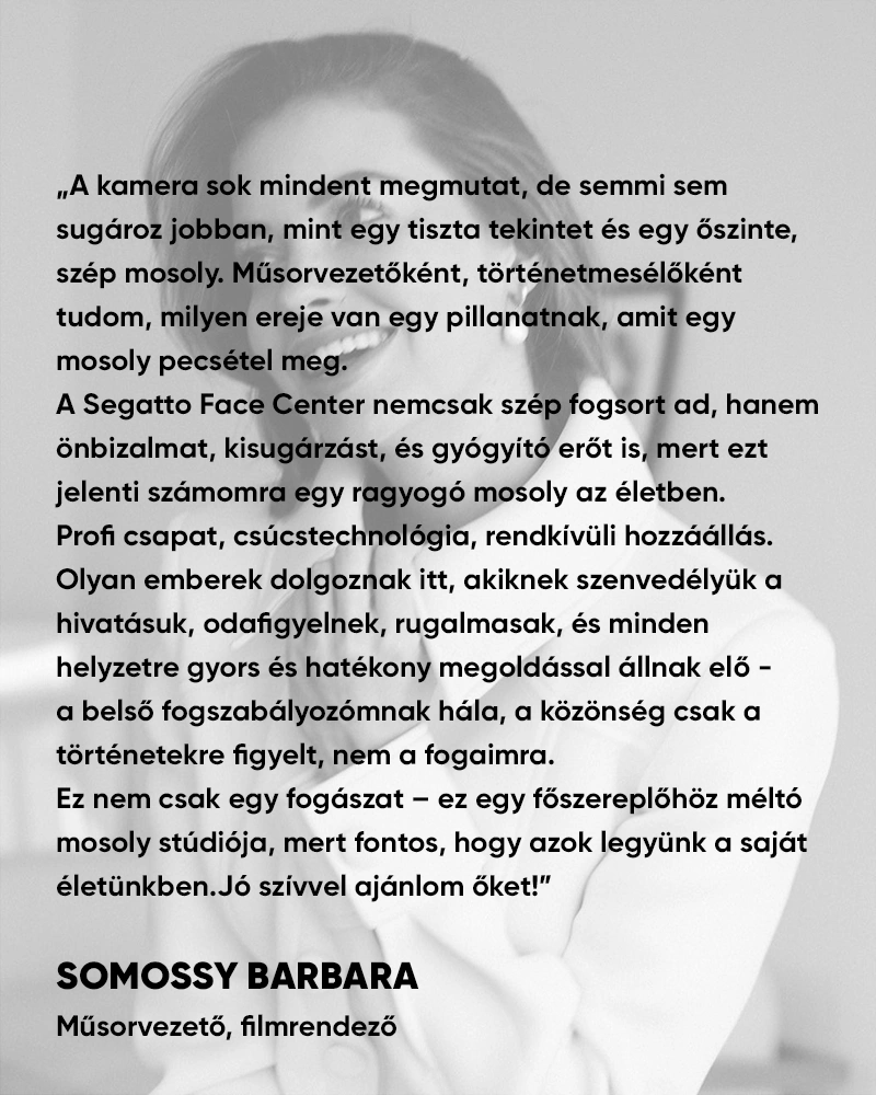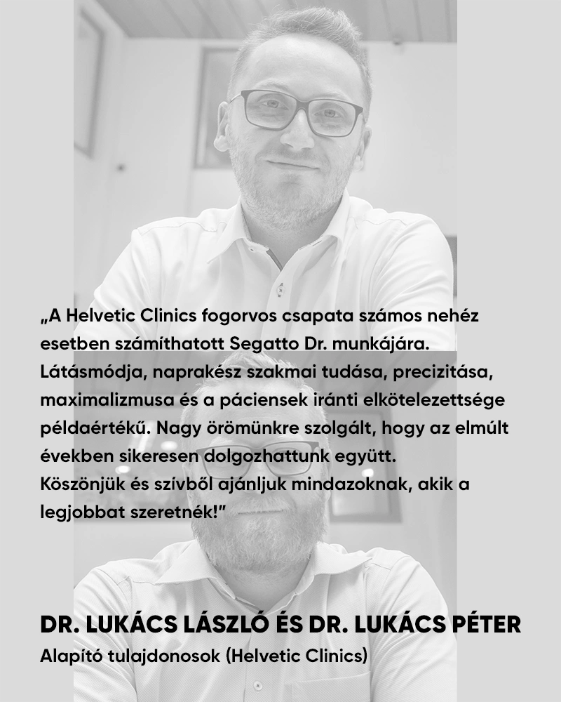 A Segatto Face Centerben a magas színvonal nem csupán egy standard – hanem egy filozófia, amely mélyen gyökerezik a művészet és a természet szeretetében, valamint a tudományban. Dr. Segatto vezetésével csapatunk túllép a hagyományos fogászaton, személyre szabott kezelési terveket készítve, amelyek harmóniába hozzák a funkcionalitást és az esztétikát. A tökéletes mosoly nem csupán a szépségről szól; zökkenőmentesen kell illeszkednie az optimális funkcióhoz, javítva az egészséget és az önbizalmat egyaránt.